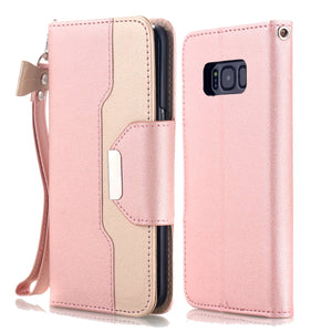 AICase Wallet PU Leather Flip Kickstand Case with Card Slots Make Up Mirror Detachable Wrist Strap Folding Stand Protective Cover