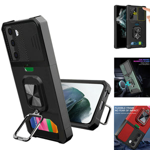 Samsung Galaxy S22 Shockproof Wallet Stand Slide Camera Cover Case with Car Mount