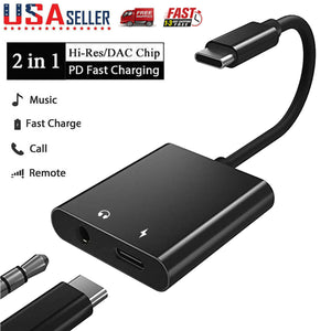 • 2 in 1 Adapter USB C to 3.5mm Splitter AUX Headphone Jack Cable